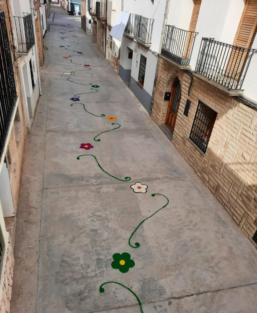 Las alfombras y dibujos han estado ubicados en la Plaza de la Iglesia, calle Iglesia y Plaza Mayor.